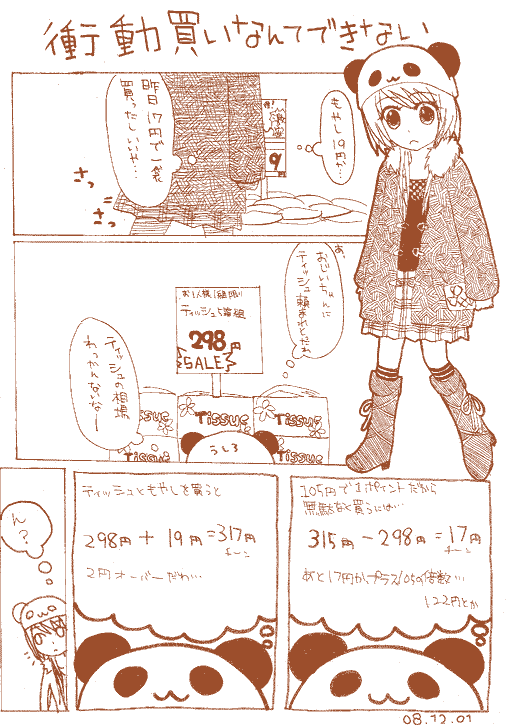 今日のできごと3ページ漫画にしてみた。クリックして大きくしてから見てね(はぁと